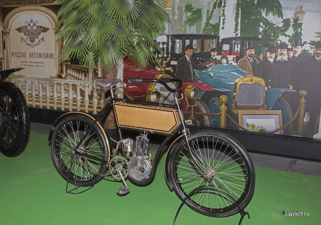 Гордость выставки — отечественный «Руссо-Балт» — единственный сохранившийся легковой автомобиль этой марки в мире. Среди других редкостей —– уникальные британский сайкл-кар «Эй-Си» и французский «Бэй-Би». Диковинные транспортные средства представлены трехколесным немецким «Феномобилем», а также французским «Де Дион-Бутон», в котором пассажиры сидят перед водителем и лицом к нему. Британский электромобиль «Сити энд Сабурбан» был изготовлен для российской императрицы Марии Федоровны.